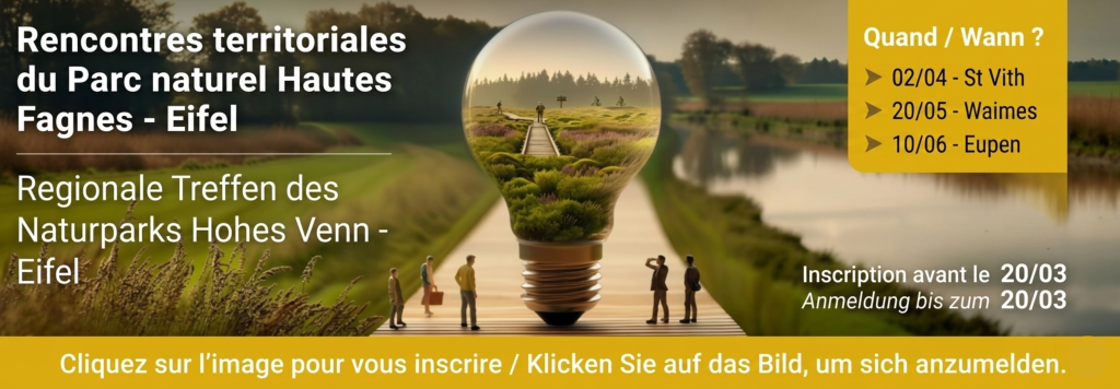 Ces rencontres s’adressent aux ASBL, entreprises, membres du corps enseignant et représentants des administrations communales des communes du Parc naturel Hautes Fagnes-Eifel.*